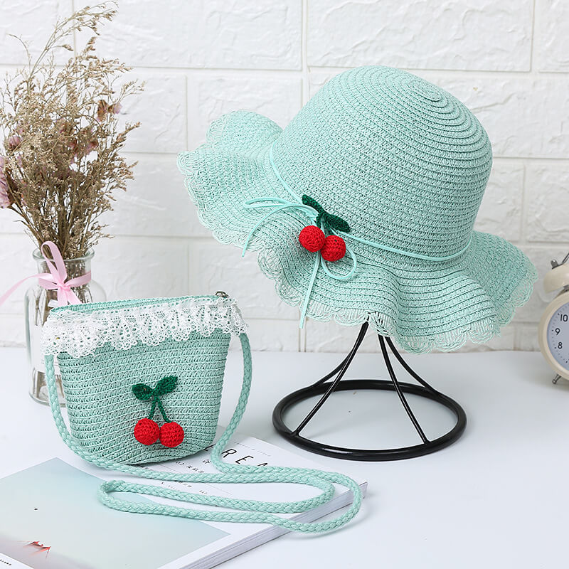 - Cute cherry detailing on both the hat and bag