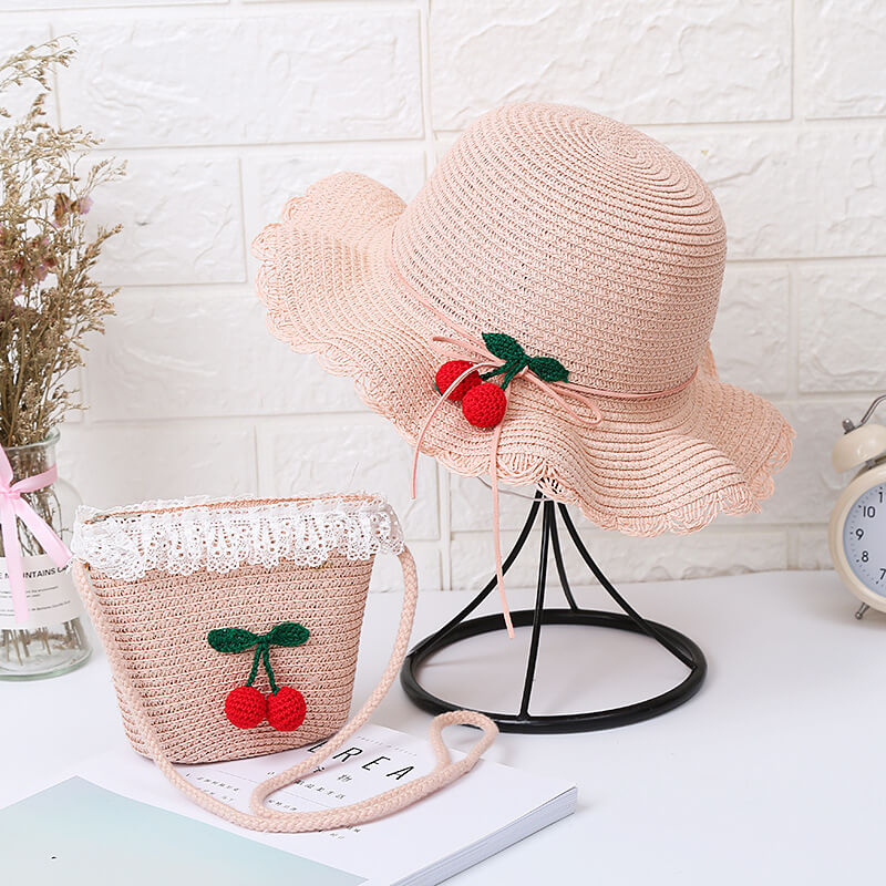 - Cute cherry detailing on both the hat and bag