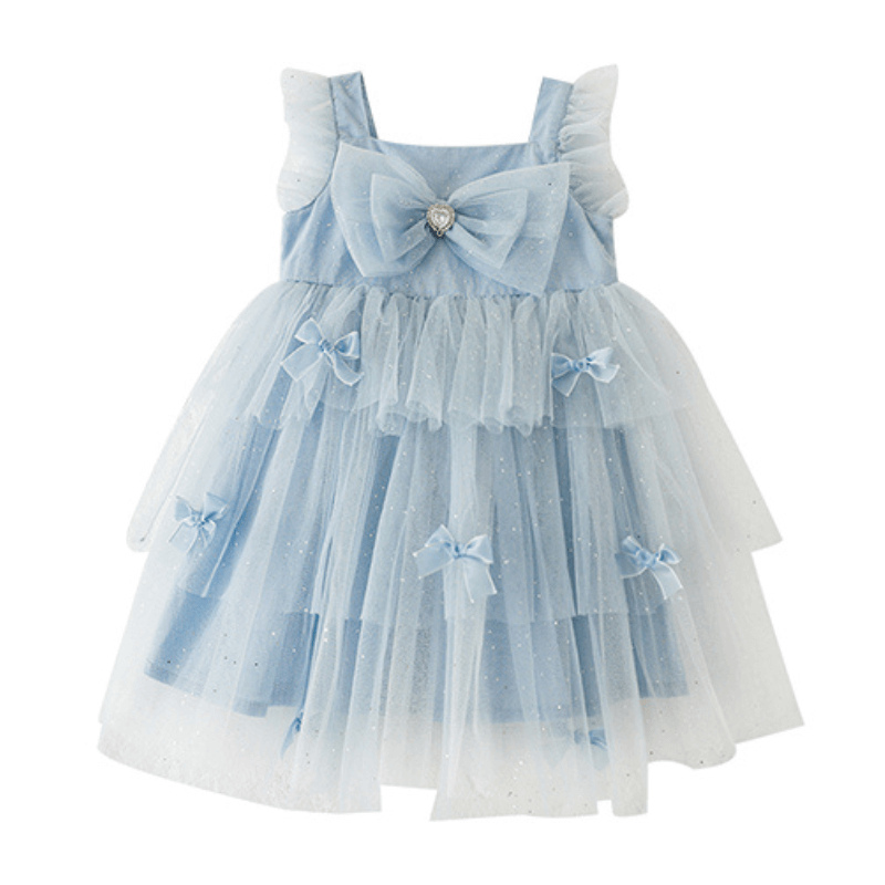 - Adorable Bow Accents: Decorated with multiple bow accents, including a large bow at the waist, enhancing the dress's cute and stylish appearance.